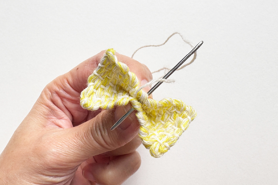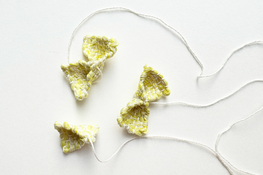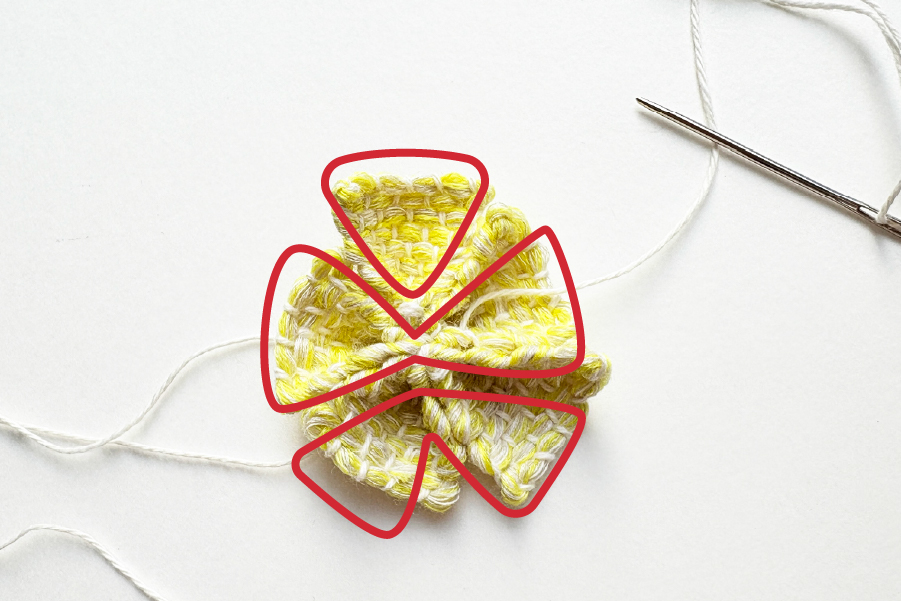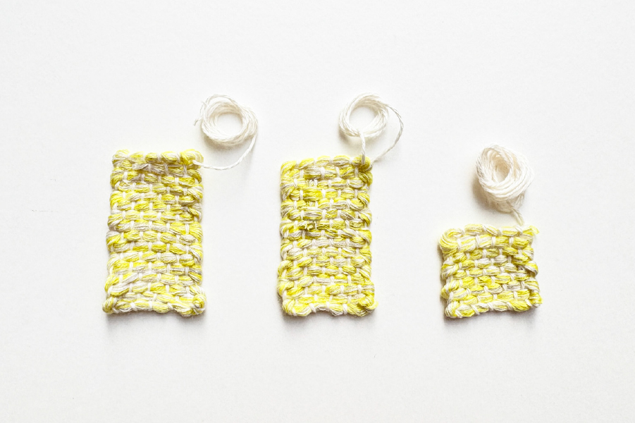 基本の織り方で、長方形のモチーフ2枚と、半分サイズの正方形のモチーフ1枚を織ります。