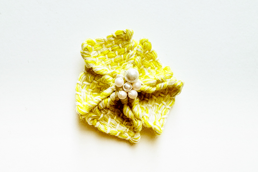 真ん中にビーズなどを縫い付けると、よりお花っぽくなります。